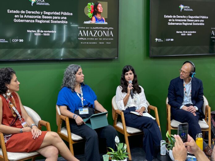 A Plataforma CIPÓ participou nesta terça-feira (18), no Pavilhão América Latina, Caribe e Amazônia da #COP30, do debate “Estado de Direito e Segurança Pública na Amazônia: Consolidando capacidades para a Proteção Regional do Bioma e suas populações”, organizado pela Organização do Tratado de Cooperação Amazônica (OTCA).